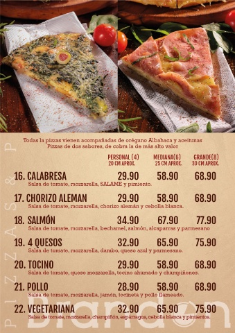 Todas la pizzas vienen acompañadas de orégano Albahaca y aceitunas
