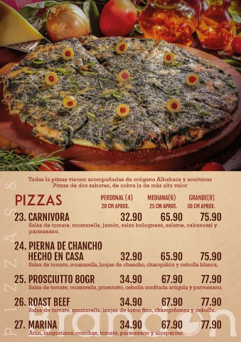 Todas la pizzas vienen acompañadas de orégano Albahaca y aceitunas